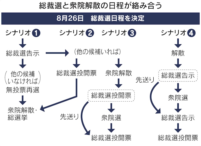 2 自民党総裁選の日程は9月29日に決定総裁選の情勢や行方は 3 解散総選挙は10月.