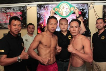 40 menang 28 di antaranya menang KOTKO 4 kalah 1 kalah KO 0 imbang. Petinju Indonesia Daud Yordan kanan bersama lawannya Rachata Khaophimai usai acara timbang badan di Bangkok Thailand Kamis 18 November 2021. Sabtu 20 November 2021 1011 WIB.